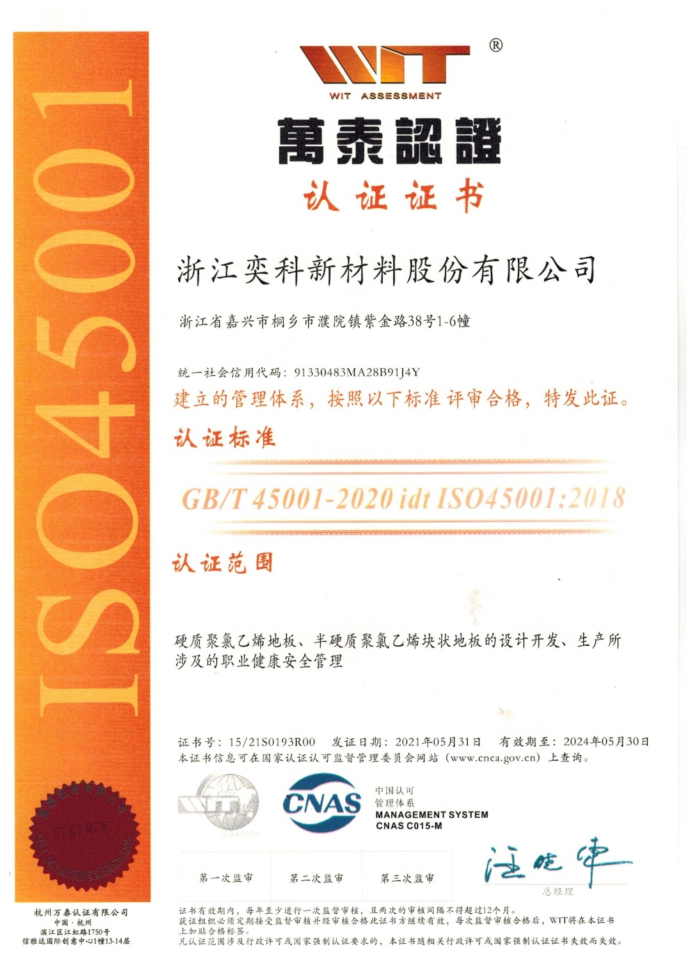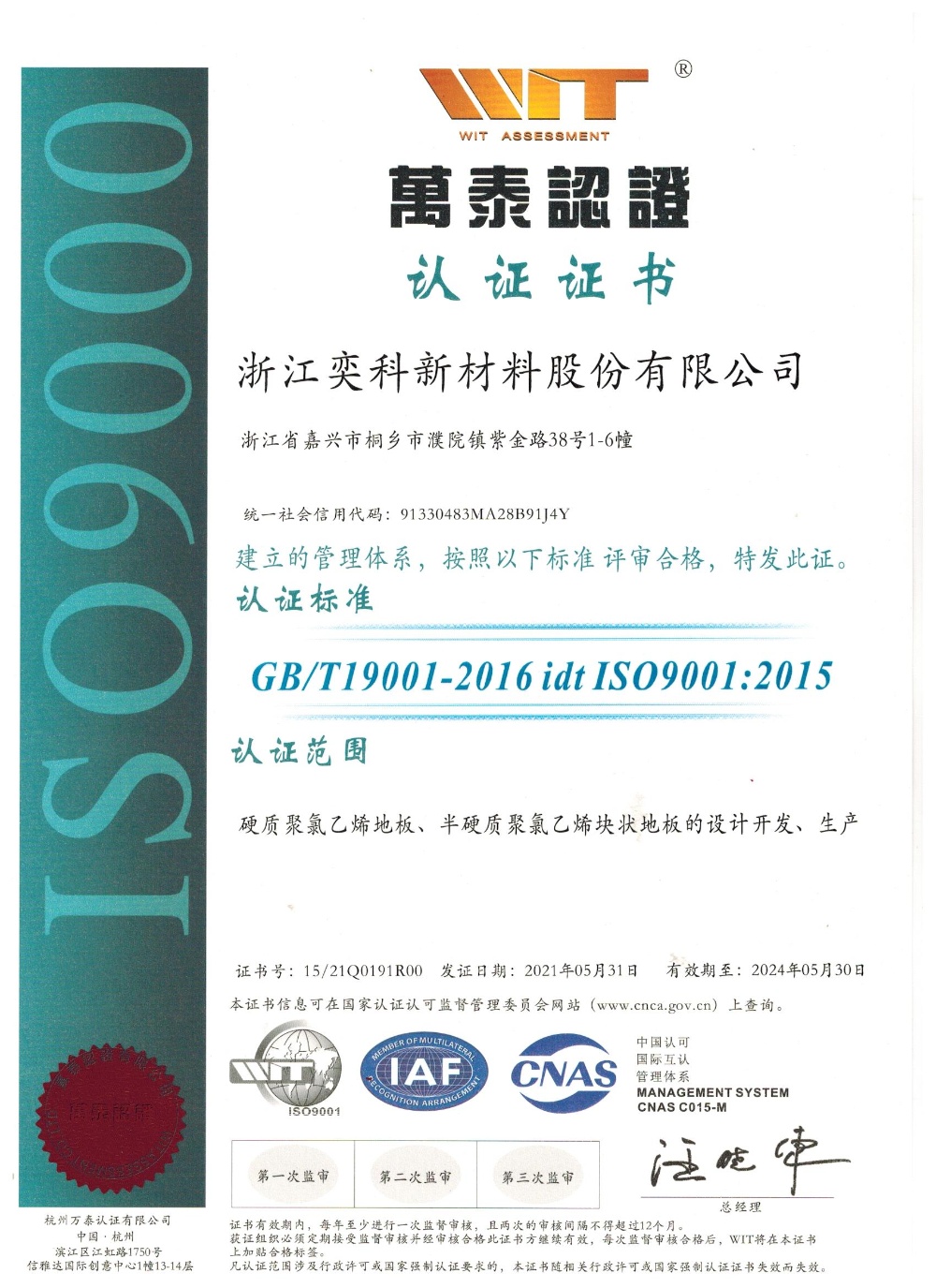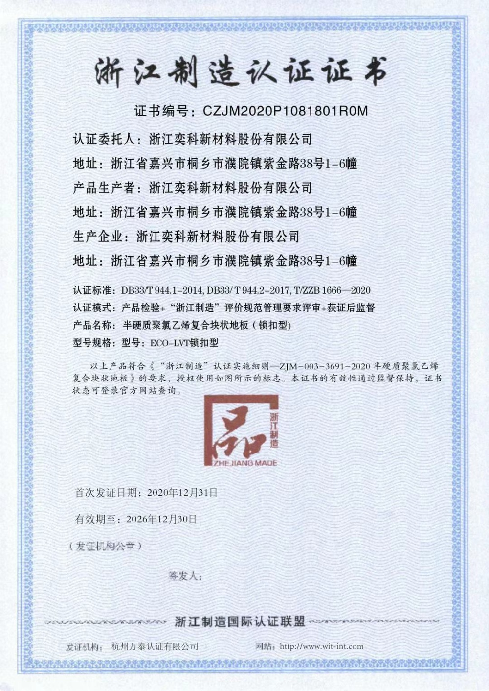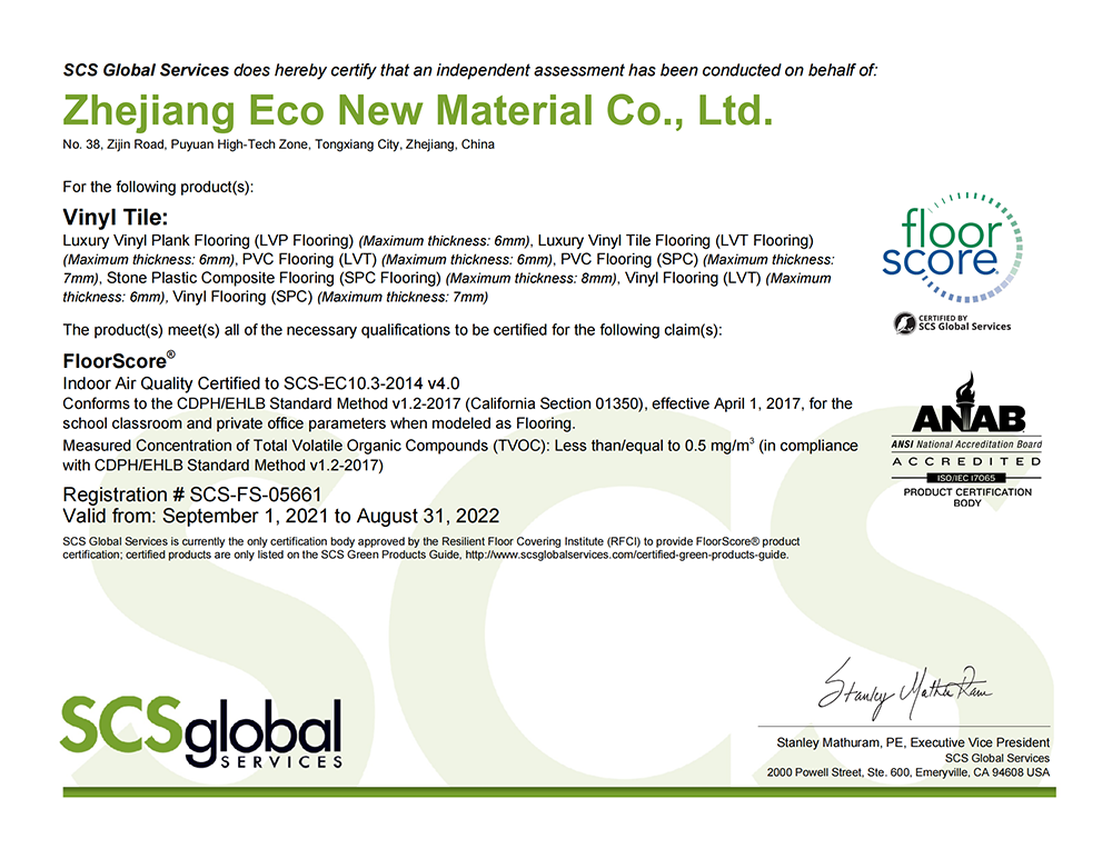 浙江奕科新材料股份有限公司座落于中國羊毛衫名鎮"濮院鎮",地處滬、杭、蘇金三角地帶,地理位置十分優越。成立于2017年,注冊資金一億一千八百八十萬元。公司專注于新型石晶環保地板的研發、生產與銷售,擁有實用新型專利及發明專利近四十余項,通過了國標、美標、歐標等各種檢測和認證。